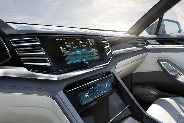 Volkswagen還為其植入名為Active Info Display的全數位化儀錶板,搭配中央的10.1吋多媒體觸控螢幕,讓車主可以以更貼近智慧型手機的操作模式,包括手勢等方式,使用多媒體整合系統。搭配著下方已全數位化的空調介面,在減少中控台按鍵,創造簡潔質感的同時,也增添了許多科技感。