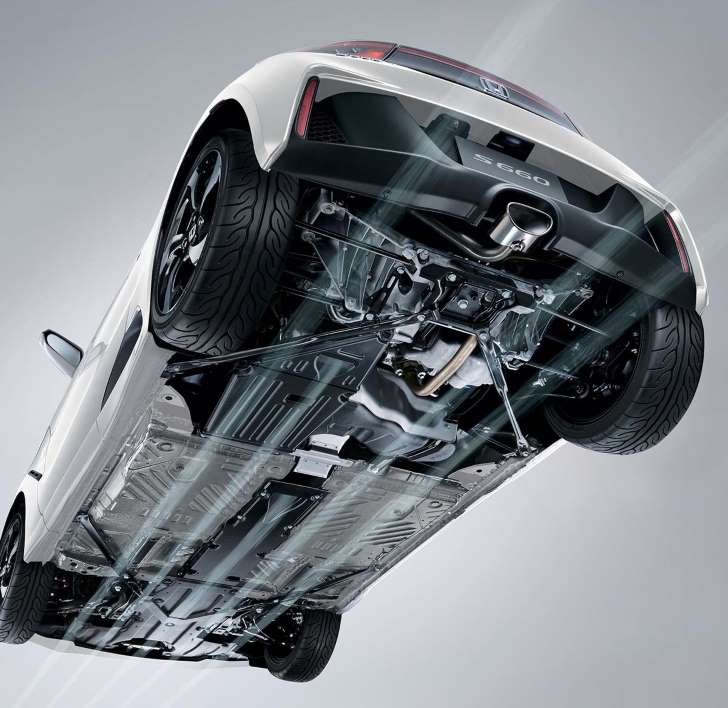 S660採用Targa式敞篷車頂,加上前後底盤的V形結構桿來自S2000為補強敞篷車體剛性的設計,使敞篷車的操控不再受到缺乏車頂鈑件的鋼性影響。而中置後驅的配置,註定使它成為極富樂趣的操控車款。