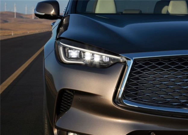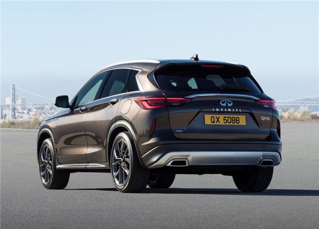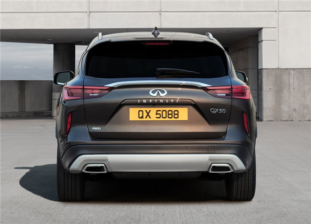量產版 QX50 的外觀與先前各大登場的概念車十分相近,除了頭尾照明燈組沒有那般前衛之外,招牌的雙弓形水箱護罩、Powerful Elegance 設計語彙帶來肌理感線條皆如出一徹,展現出 Infiniti 新世代家族化面孔。另外全車多處像是水箱罩、弓形窗框以及雙邊單出矩形排氣管等部件,還用上鍍鉻飾條妝點出豪華質感,而 4,693x1,903x1679mm 的車身尺碼比前代車型略短,但寬度/高度略微增加則確保車室空間,軸距則為 2,800mm。
