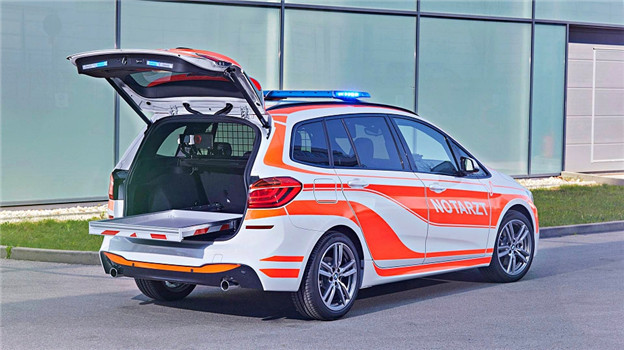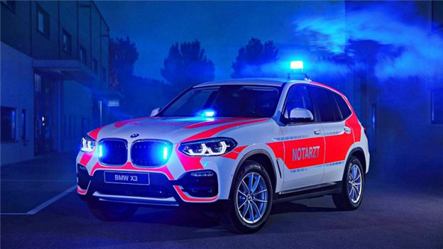 在本屆展覽中,新世代的 X3 當然是最受矚目的新品之一,甫於強大的適地性與空間機能,不論是用做救援或是指揮車都能恰如其分的扮演好角色,BMW 也賦予該車專屬塗裝,並增設 230v 的主電源插孔與多處 12v 供電孔,以及專用的導航、通訊系統、警示燈組,並於後廂安置 2kg 的滅火器,在可靠的跨地形能力與動力驅策下,足以讓救護人員迅速抵達事故地點,展開第一線的救援任務。