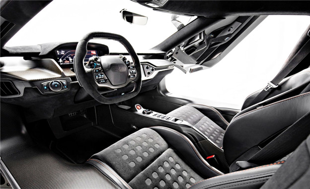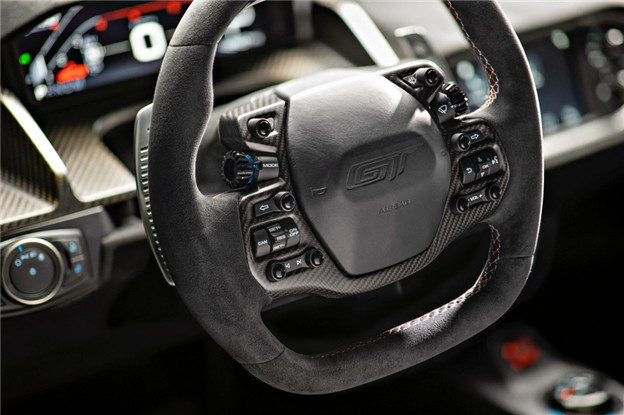 車室內包含儀錶板、方向盤、座椅、支柱及車頂內襯皆由 Ebony Alcantara 皮革包覆,座椅和方向盤則採用藍、橘雙色對比車縫線,座椅花紋設計同樣向 1968 年利曼冠軍賽車致敬。如同過往 Heritage 車型,GT Heritage Edition 不僅擁有獨一無二的序號銘牌,在車內多處皆配有霧面碳纖維點綴,增添更多戰鬥氛圍。