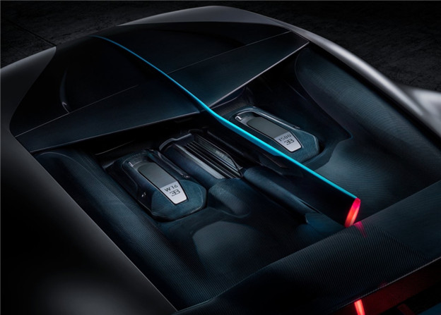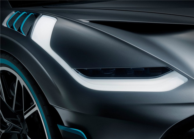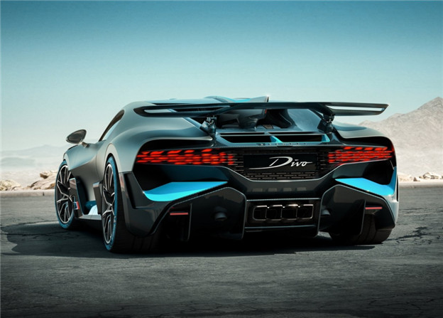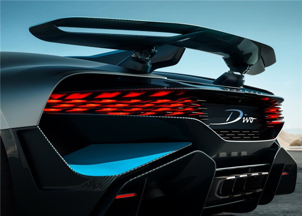 為了賦予該車更極致的動態身段,Bugatti 為它換上更臻輕盈的輪圈,並提高碳纖維材質的應用比例,座艙的包覆面料與音響系統也全面輕量化,如此 Divo 比 Chiron 減少了 35kg 的車重;另外值得一提的是,其複雜的尾燈與車尾結構,係採用 3D 列印技術製成,結合全新 Divo Racing Blue 專屬車色,顯得美型大器同時也十足炫目。