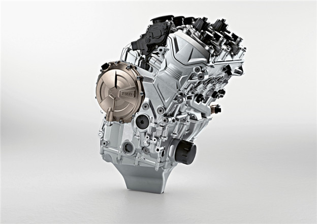 全新 S1000 RR 動力核心搭載全新開發的排量 999 c.c.直列四缸引擎,可輸出 207hp 最大馬力,引擎本體重量則較前代輕了 4kg,其中汽門就較上代輕了 25%,幫助引擎得以一舉上衝至 14,500rpm 的超高轉速,官方雖未公布加速性能,不過 3 秒破百、極速突破 300km/h 絕不是難事。