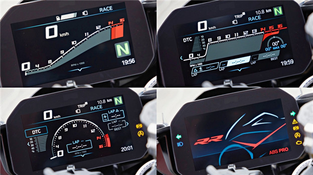 儀錶換上 6.5 吋 TFT 彩色螢幕,提供三種不同顯示模式,擁有 Rain、Road、Dynamic 和 Race 四種駕駛模式,並另有可自由編程的三段「Pro Modes」,包含 DTC、ABS 甚至是引擎煞車、彈射起步以及 Pit 區限速皆可自由調整。
