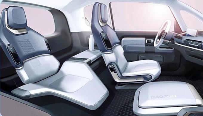 車內空間方面,得益於純電動的平台和四輪四角的設計,寶駿E300E300PLUS的空間利用率很高,由於沒有傳統的發動機變速箱,同時採用後置後驅動力佈局,駕駛艙就可以進一步前移,使得車內空間利用最大化,上下班通勤、休閒購物、接收孩子均能夠勝任。新車擁有兩座、三座、四座共三種內艙佈局,其中三座設計的副駕駛座椅可折疊,與後排連同能形成一個很好的休息空間。