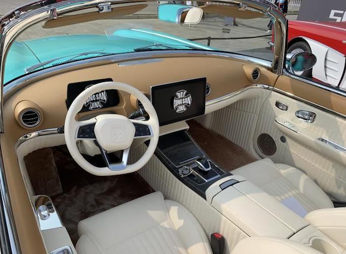 SS DOLPHIN中文名「海豚」,這款基於1958年款雪佛蘭Corvette C1打造的車型擁有敞篷版和硬頂雙座版,加上大量的鍍鉻裝飾、紅白的車身配色,復古風味十足。 新車長寬高尺寸分別為4855/1900/1431mm,軸距2700mm。整體造型復刻了雪佛蘭Corvette(科爾維特)C11958年款)的經典造型,車頭的四圓燈以及側面的鯊魚鰓通風口是外觀最明顯的特徵。尾部造型也是那些年美式跑車的典型特色,尾部兩條縱向鍍鉻條也復刻自原版車型。